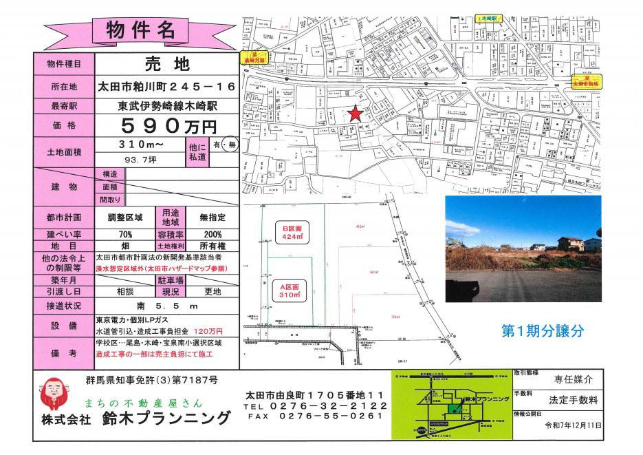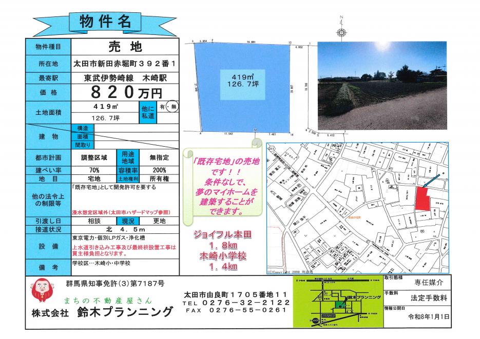 「太田市新田赤堀町」に2区画の売地情報を発信します